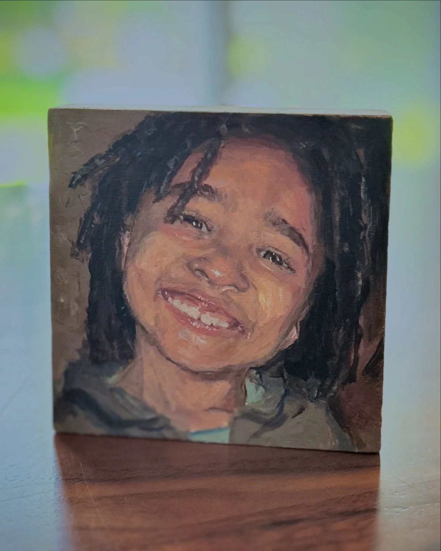 Portrait painting sessions are available for 4x4 pieces in September. DM or use contact form to book a session. Can do photo, zoom, or in person. All 4x4 minis are $72 + $15 ship.